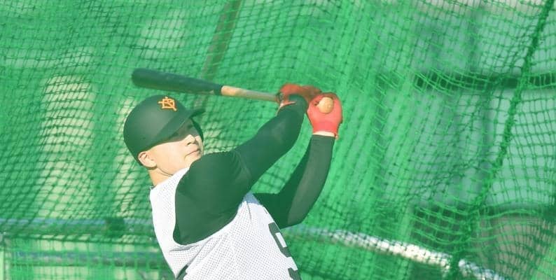 新人合同自主トレで初めて行われた屋外フリー打撃では、青空の下で甲高い衝撃音が響いた。まずは左翼ポール際に放り込むと、今度は片手で左中間最深部にズドン。推定120メートルのアーチを片手だけで描き、ラストスイングではバックスクリーンにぶち当てた。