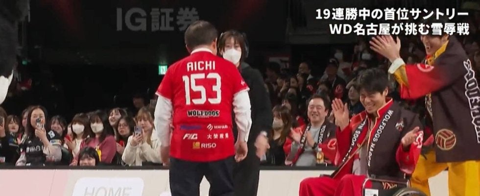 1月17日に大同生命SVリーグ男子の第11節が行われ、ウルフドッグス名古屋はホーム「IGアリーナ」に前年度王者・サントリーサンバーズ大阪を迎えた。会場を埋め尽くす大観衆が見守ったゲームの前に始球式が行われると、ファンの笑顔が溢れる時間が訪れた。