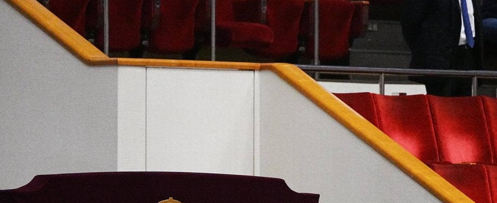 陛下らがお座りになる国技館2階の貴賓席には、イスが3つ準備された。