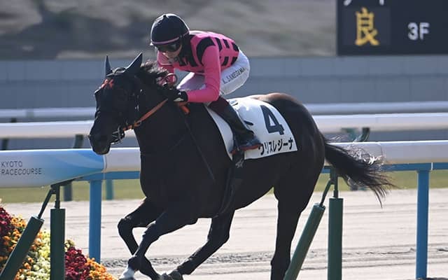 18日、京都競馬場5Rで行われた新馬戦(3歳・芝2000m・17頭)は、好スタートからハナに立って、直線で後続を振り切った鮫島克駿騎手騎乗の2番人気クリスレジーナ(牝3、栗東・高野友和厩舎)が、1番人気ロードスタニング(牡3、栗東・杉山晴紀厩舎)に1.1/2馬身差をつけ優勝した。勝ちタイムは2分03秒5(良)。