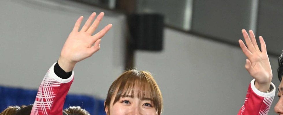 大観衆の中、スキップ吉村紗也香(33)らチームメートとともに手を振りながら行進。初めてのイベントに参加し「本当に想像以上の人に来ていただいて」と感謝。「上まで見えてまーす」と笑顔を見せた。
