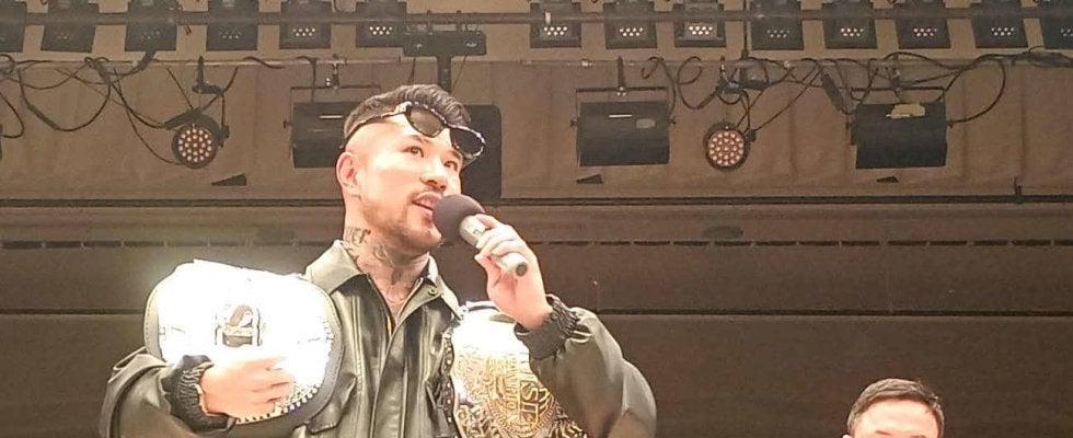 第5試合終了後にRISEライト級(-62.5キロ)王者でRISEワールドシリーズ2025-61.5キロトーナメント覇者の中村寛(29=BK GYM)がリングに登場。「ちょっと僕は今、地固めの作業をしてるので、こんな状態でみんなの目標になってるベルトを僕は持っとくことは自分の性格上できないので、ベルトを返上します」と話し、後楽園ホールのどよめきの中、ライト級のベルトとトーナメント優勝のベルトまでRISE伊藤隆代表に返上してしまった。