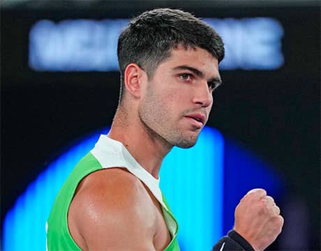 テニスの全豪オープン(オーストラリア/メルボルン、ハード、グランドスラム)は18日、男子シングルス1回戦が行われ、第1シードのC・アルカラス(スペイン)が世界ランク79位のA・ウォルトン(オーストラリア)を6-3, 7-6 (7-2), 6-2のストレートで下し、3年連続5度目の初戦突破を果たした。