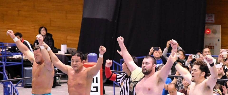 永田裕志(57)によるプロデュース興行で、4日の東京ドーム大会で衝撃デビューを飾った東京五輪柔道男子100キロ級金メダルのウルフアロン(29)が3戦目で自身初のメインイベントに臨んだ。8人タッグマッチで永田、矢野通(47)、ボルチン・オレッグ(32)と組み、極悪レスラーのEVIL率いる悪党集団ハウス・オブ・トーチャー(HOT)と対戦。初めての金的攻撃を受ける屈辱も味わったが、逆三角絞めでディック東郷(56)を失神KOし、デビュー3連勝で大会を締めくくった。