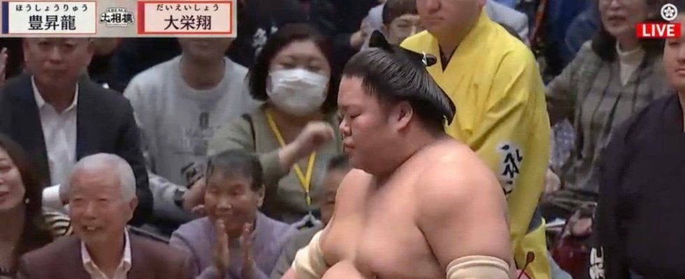 迎えた豊昇龍との取組では大栄翔が叩き込みで下し金星獲得。この大栄翔の姿を受け、寺田氏は興奮気味に拍手を送った。大栄翔は2勝目を上げ、豊昇龍は2敗目を喫した。