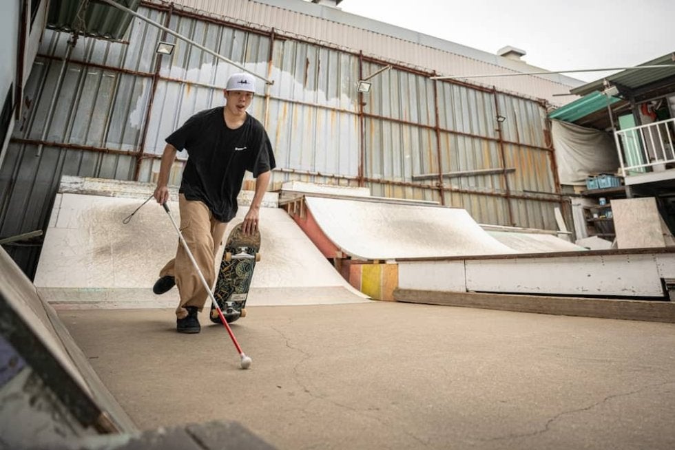 2000年生まれ、福島県郡山市出身。進行性の目の病気「網膜色素変性症」により現在までに視界の95%以上を失っている。中学時代にスケートボードと出会うが、病状の進行とともに絶望し、”見えているふり”をする時期も経験。同じく病気のスケーター、ダン・マンシーナの存在に勇気を得て、「降りなければ、ずっとやれる」と本格的にブラインドスケーターとしての活動を再開。現在は鍼灸師として働く傍ら、研ぎ澄まされた感覚と独自のロジックを武器に挑戦を続け、今年8月にスペインで開催された国際大会「オマリスキーニョ」では3位に入賞。自身の経験を通して「共生社会」の実現を目指している。