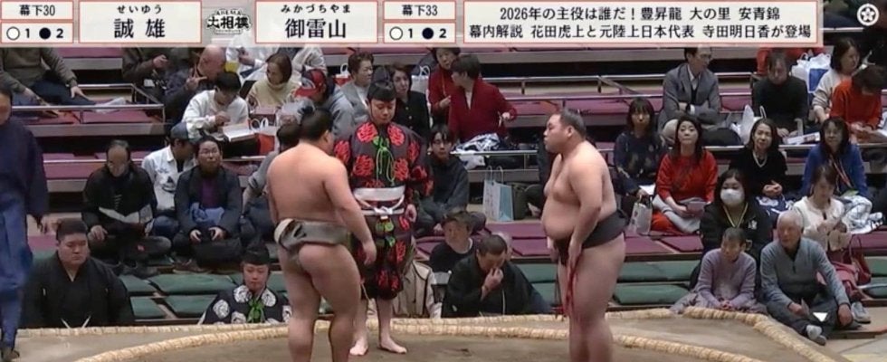 幕下三十枚目・誠雄(秀ノ山)と幕下三十三枚目・御雷山(錣山)の取組で、勝敗を決した直後まさかの“熱烈ハグ”。そのシーンに対し「熱烈ハグw」「めっちゃハグしたw」などと視聴者が注目した。