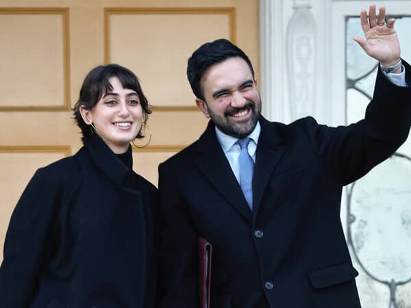 ニューヨークの新市長ゾーラン・マムダニ(右)と妻のラマ・ドゥワジ