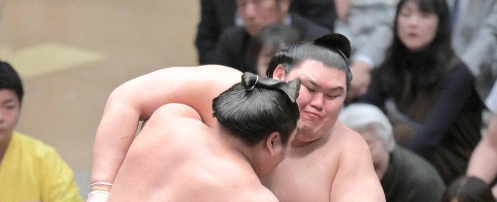 横綱・大の里(二所ノ関)は、小結・若元春(荒汐)に寄り切られ、2連敗で3敗に後退した。過去8勝2敗の相手に、もろ手突きでいったが、右を差せず、ずるずると土俵を割った。
