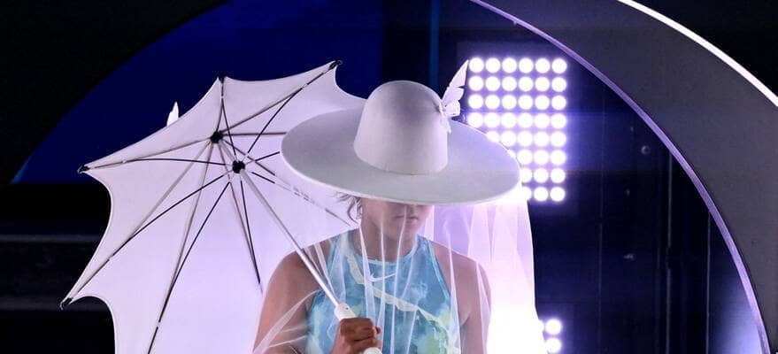 つばと長いベールのようなものが付いた白い帽子をかぶり、白い変わった形の傘をさし、ウェアの下には白いレースをあしらったヒラヒラしたパンツのような衣装をまとい、まるで新婦のような装いで現れた。帽子をとり、パンツ状の衣装を脱ぐと、今度は袖部分に白いフリルが付いた上着を羽織ってアップを開始。試合中に着用した、緑ベースのワンピースにもレースのようなものが縫い付けられており、動くたびにヒラヒラと揺れた。