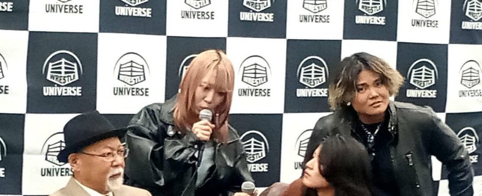会見にはツインスター王座防衛戦に臨む王者組の松井珠紗&CHIAKIと、挑戦者組の山岡聖怜が出席。現役女子高生の心希は欠席し「クソガキなりに全力でツインスター獲りにいきます。スパンキーモンスター(山岡とのタッグ名)がやっちゃいます」とのコメントを寄せた。