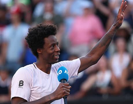テニスの全豪オープン(オーストラリア/メルボルン、ハード、グランドスラム)は20日、男子シングルス1回戦が行われ、今季限りでの現役引退を表明している世界ランク110位のG・モンフィス(フランス)は予選勝者で同182位のD・スウィーニー(オーストラリア)に7-6 (7-3), 5-7, 4-6, 5-7の逆転で敗れ、自身最後の全豪オープンは初戦敗退となった。試合後のセレモニーでは、最後に観客へフランス語でメッセージを送った。
