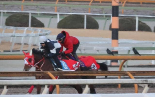 坂井瑠星騎手が跨り、ルシュヴァルドールとともにCWへ入場。非常に落ち着いた雰囲気で馬場入りすると、5馬身ほど後ろから追走して、6F標識を通過する頃にはそれが少し縮まったかなという感じ。3コーナーあたりでは3馬身くらいのところまで差が詰まっていたが、行きたがっているわけではなく、前が遅かった分、その差になったという感じ。