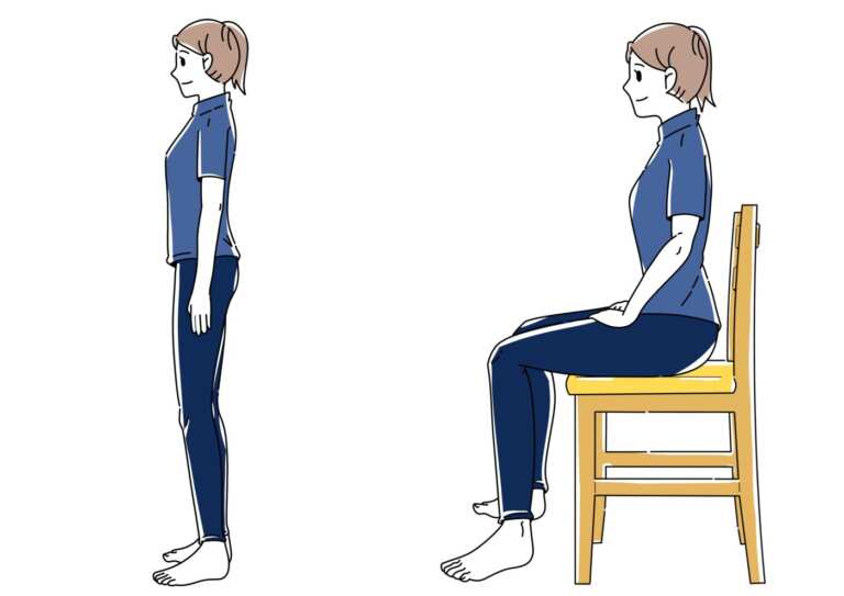 1.椅子に浅く腰かけ、背筋を伸ばして座る