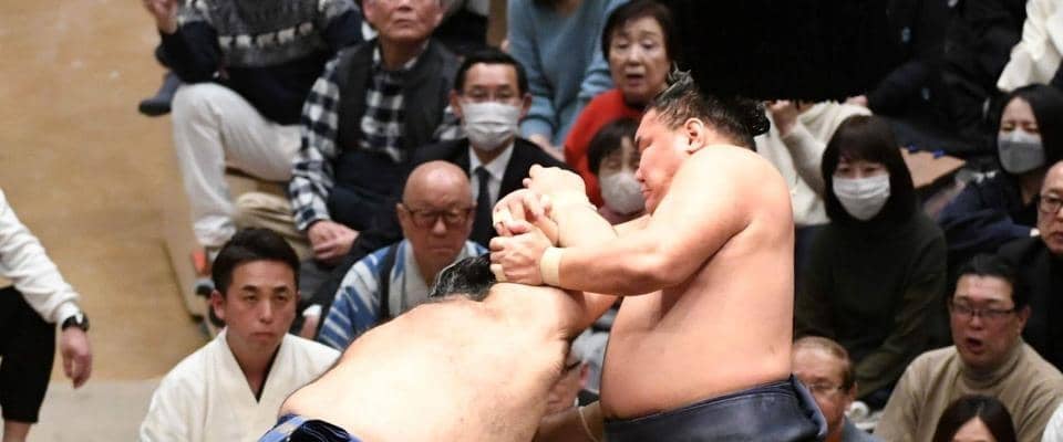 関脇霧島は横綱大の里に敗れ、前日の琴桜戦に続いて連敗で3敗に後退した。