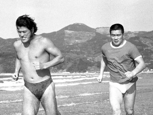 海岸を走るアントニオ猪木(左)と藤原喜明