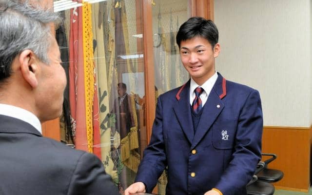 進学予定の専修大学でも野球を続ける。プロ野球・読売ジャイアンツの坂本勇人選手が理想といい、「チームを勝たせられる、走・攻・守そろった選手になりたいと思います」と話した。(松永和彦)
