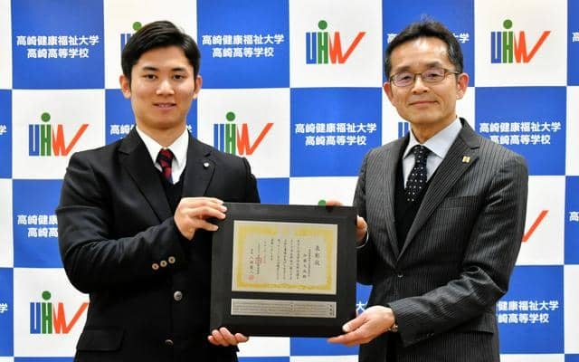 昨夏の第107回全国高校野球選手権群馬大会で優勝し、2年連続で夏の選手権大会に出場した健大高崎高校(群馬県高崎市)の前主将・加藤大成(たいせい)さん(3年)が、日本学生野球協会から2025年度の表彰選手に選ばれ、21日に同校で表彰式があった。表彰選手は各都道府県から1人選出される。
