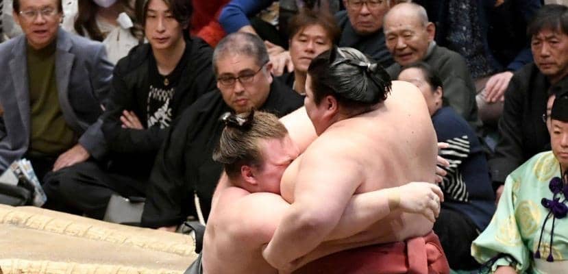 3敗対決となった一番は関脇霧島が横綱豊昇龍を破った。豊昇龍は取組後、足を気にする場面があった。