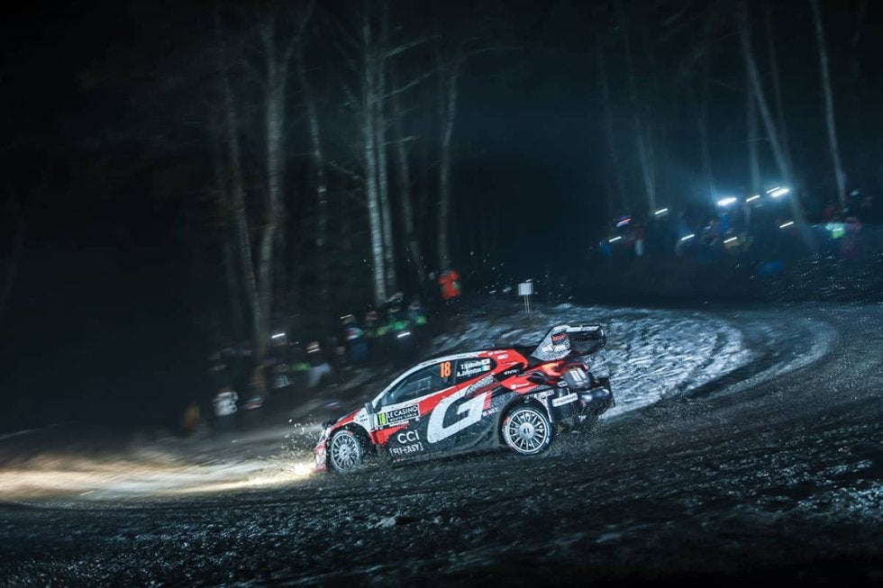 一夜明けた22日(木)は、モナコのハーバーフロントでのセレモニアルスタート開始に先立ち、WRC史上最多タイ記録となる、オジエの9回目のドライバーズタイトル獲得を記念した「GRヤリスSébastien Ogier 9x World Champion Edition」を、オジエ自身がサポートする形でアンベール。その後、華やかなセレモニアルスタートを経て、選手たちは遠く離れたギャップのサービスパークを目指しながら、デイ1として3本合計60.76kmの山岳ステージを走行しました。日没前の開始となったSS1はウェットコンディションとなり、エバンスが、2番手タイムのソルベルグに5.6秒差をつけるベストタイムを記録。オジエは3番手タイム、勝田は5番手タイム、パヤリは11番手タイムでした。続くSS2は日没後のスタートとなり、標高が高い後半部分は、溶けて水分を多く含む雪や氷に覆われた区間が多くあり、非常に滑りやすいコンディションでした。このステージではソルベルグが、2番手タイムのエバンスに31.1秒差をつける圧巻のベストタイムを記録。エバンスを抜いて首位に立ち、25.5秒のリードを築きました。一方、出走順トップでステージに臨んだオジエは、大きく遅れて総合5位に後退。勝田は総合7位に順位を下げました。TGR-WRT2からエントリーのパヤリは、SS2で橋に当たりクルマの左リヤを破損。走行を続けることができなくなりデイリタイアとなりました。チームはクルマをサービスに運び、明日のデイ2でパヤリを再出走させるべく修理に取り組みます。デイ1最後のステージ、SS3は濃霧による視界不良などの理由により途中でレッドフラッグが出されキャンセルに。しかし、それよりも前に走行したオジエがベストタイムを記録し、総合3位にポジションアップ。2番手タイムのソルベルグが首位を守り、4番手タイムのエバンスはソルベルグと44.2秒差の総合2位で、勝田は総合7位でデイ1を終えました。