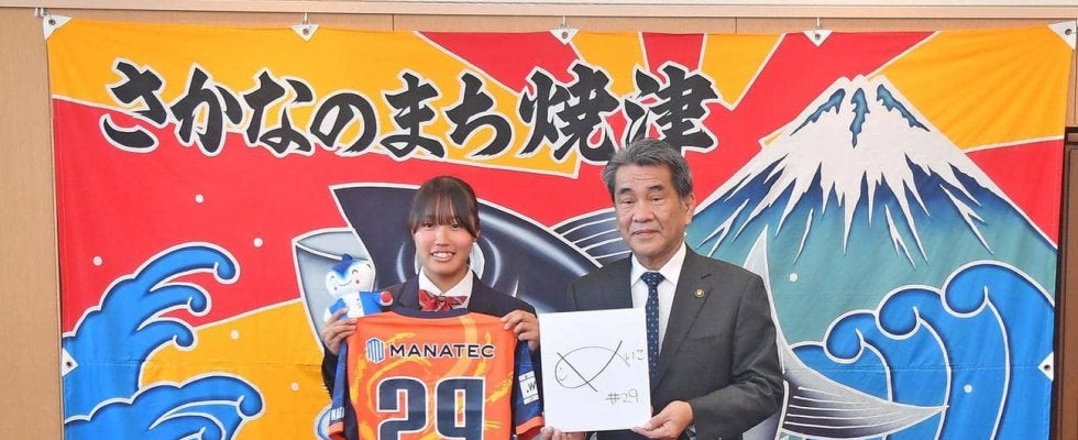女子サッカー最高峰のWEリーグ長野入りが内定している常葉大橘高女子サッカー部のFW松浦芽育子(3年)が23日、地元焼津市の中野弘道市長(68)を表敬訪問した。