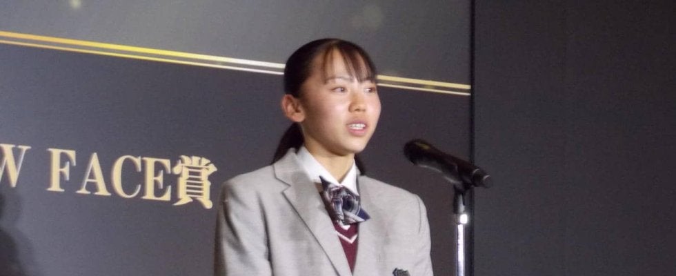 「NEW FACE賞」を受賞し「陸上800メートルでたくさんのことを経験して、すごく成長することができた。もっともっと努力して、頑張っていくようにしたいと思います」と決意を新たにした。この日は髪を下ろし「『走らないしいいかな』という軽い気持ちで、今日はお団子(ヘア)じゃないです」とほほ笑んだ。