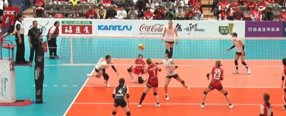 女子バレーで、まさに“ミラクル”なサーブが炸裂した。デンソーエアリービーズの石倉沙姫が放ったボールは、ネットに当たって相手コートへ。誰も取れない絶妙な位置に落ちてエースになると、このポイントには味方も大はしゃぎで喜びを分かち合っていた。