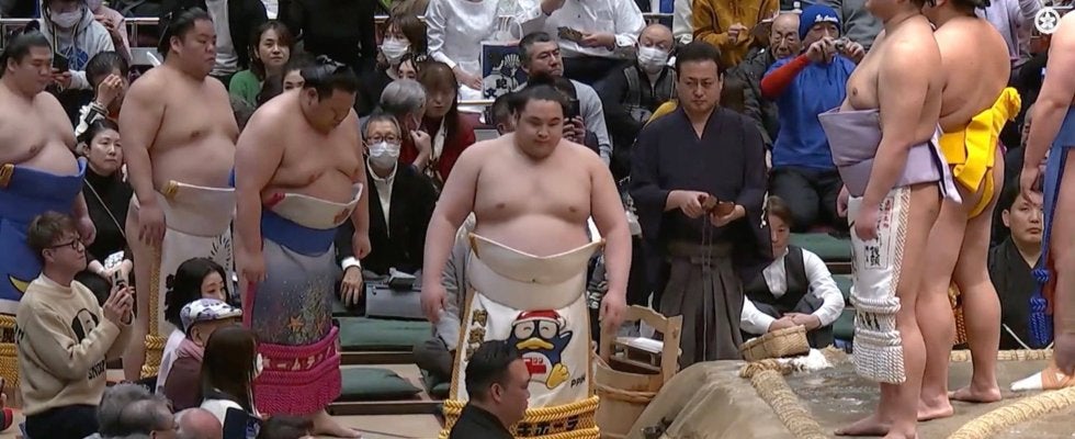 館内の視線が集まる中、なんと2人は揃ってディスカウントストア「ドン・キホーテ」の公式キャラクター「ドンペン」が大きく描かれた化粧まわしを着用して登場。欧勝馬が土俵に上がり、続いて阿武剋が姿を見せると、土俵上には可愛らしいペンギンのキャラクターが2体並ぶという珍しい光景が広がった。
