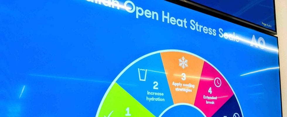 ◆ヒートルール メルボルン・パーク(会場がある場所)の複数地点で、気温、放射熱、湿度、風速の4気候要素を測定。広範な研究と試験を経て設定した熱ストレス指数(HSS)を1~5段階で算出する。最大の5になると、すべてのコートで行われている男女シングルス、ダブルス全ての試合が中断される。車いすテニスはHSSが4・6、ジュニアは4・9が中断の目安だ。
