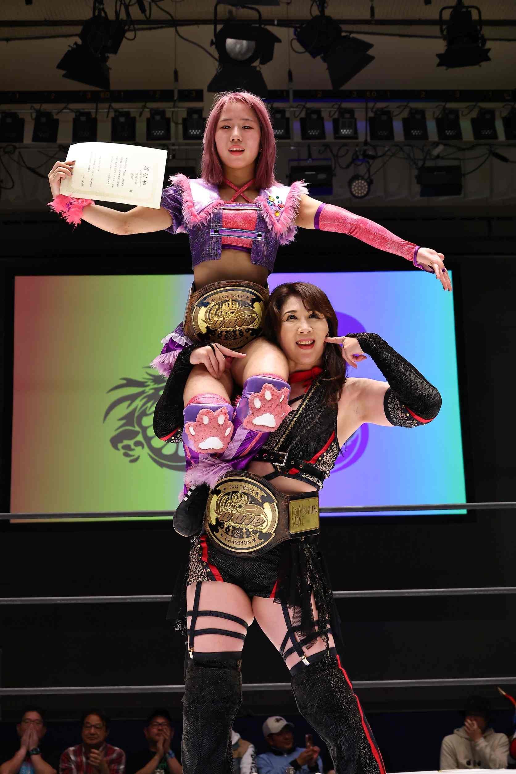 一方で誕生時からの成長を知る子がやがて同じリングに立ち、初のチャンピオンベルト獲得のパートナーとして共闘した桜花。数々のタイトルを獲得した百戦錬磨のレスラーにとっても特別と感じる試合であった。