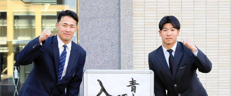 東都大学野球の青学大は24日、相模原市内で本年度入部予定者の入寮式を行い、入部予定者7人が参加した。プロ注目で投打「二刀流」の新井瑛太(滝川)は「(ドラフト)1位で即戦力を目標に掲げている。1年生から自分の強みを生かして結果を残していきたい」と意気込んだ。