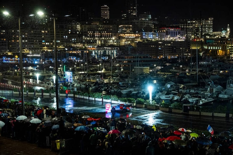 クルーはモナコへと移動し、F1モナコGPのコースを含むモンテカルロの市街地を走るSS13へ。激しい雨がコースを打ち付けるなか、多くのスペクテイターの歓声を受けてベストタイムを刻んだのは「こうやってモナコを走るのは初めてなんだ」と振り返ったフランス出身のフルモー。0.7秒差で勝田、4.4秒差でヌービルで続く。