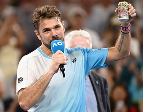 最後の全豪オープンを終えたワウリンカは、試合後のオンコートインタビューでビールを取り出し、トーナメントディレクターのクレイグ・タイリー氏と、観客と乾杯。コートでビールを飲み大会に別れを告げた。