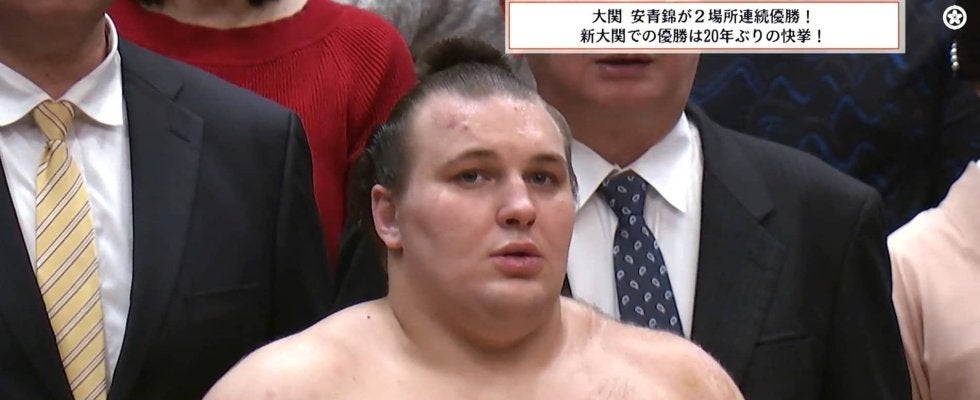 注目を集めたのは、優勝決定戦で前頭四枚目・熱海富士(伊勢ヶ濱)を首投げで下し、2場所連続優勝を飾った新大関・安青錦(安治川)の表彰式でのこと。