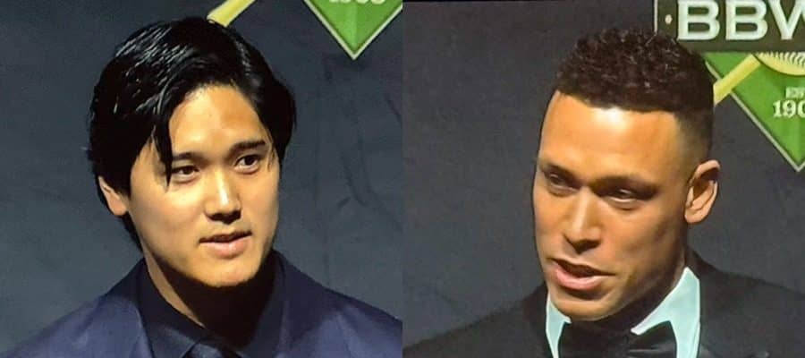 スター共演に会場が熱気に包まれた。昨季、3年連続4度目のMVPを受賞したドジャースの大谷翔平投手は24日(日本時間25日)、全米野球記者協会(BBWAA)のニューヨーク支部が主催する夕食会に出席。ア・リーグMVPのアーロン・ジャッジ外野手(ヤンキース)も参加したことで、両者の“初共演”に注目が集まった。