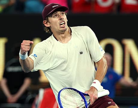 テニスの全豪オープン(オーストラリア/メルボルン、ハード、グランドスラム)は25日、男子シングルス4回戦が行われ、第6シードのA・デ ミノー(オーストラリア)が第10シードのA・ブブリク(カザフスタン)を6-4, 6-1, 6-1のストレートで破り、2年連続2度目のベスト8進出を果たした。