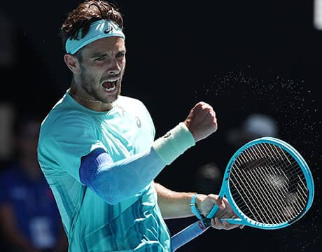 テニスの全豪オープン(オーストラリア/メルボルン、ハード、グランドスラム)は26日、男子シングルス4回戦が行われ、第5シードのL・ムセッティ(イタリア)が第9シードのT・フリッツ(アメリカ)を6-2, 7-5, 6-4のストレートで破り、同大会初のベスト8進出を果たした。