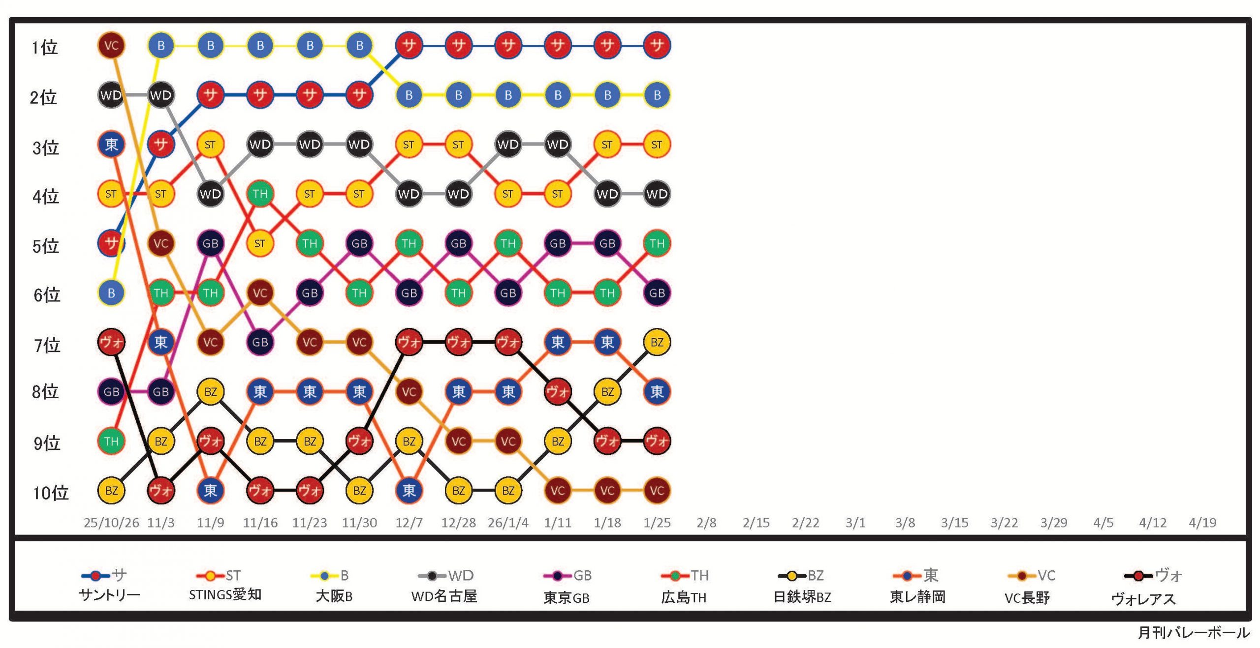 SV男子順位推移表(1月25日終了時点)