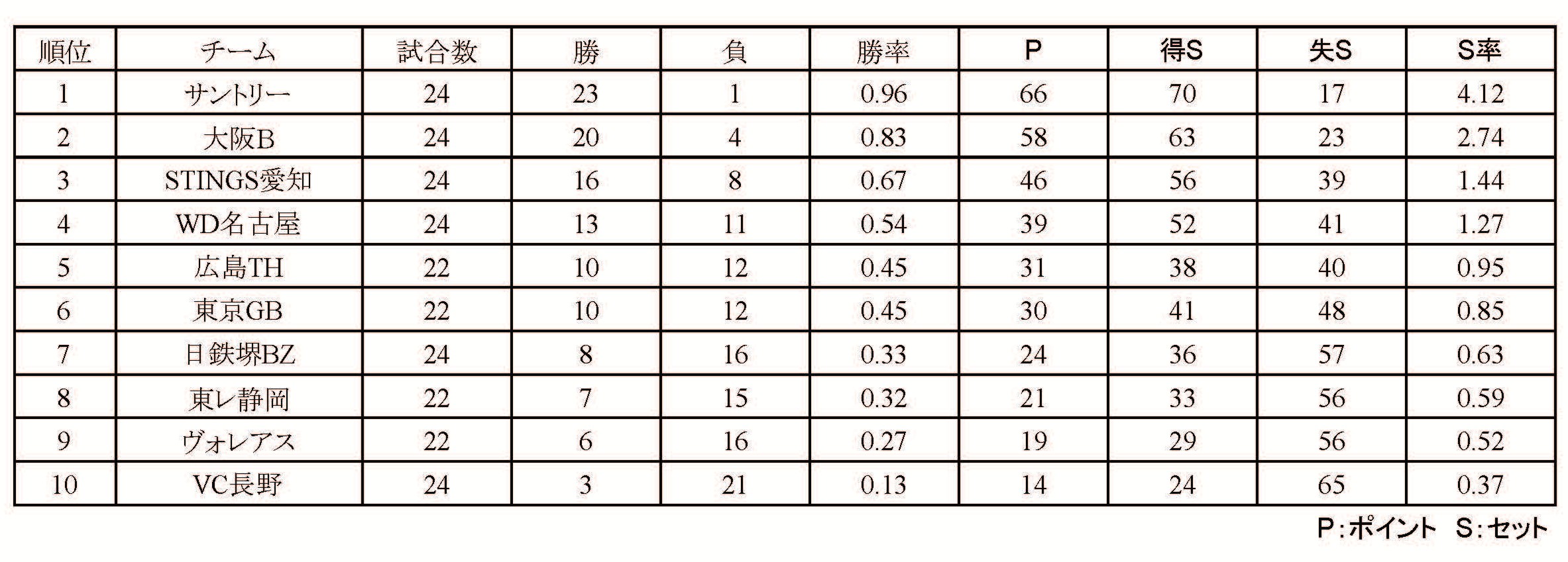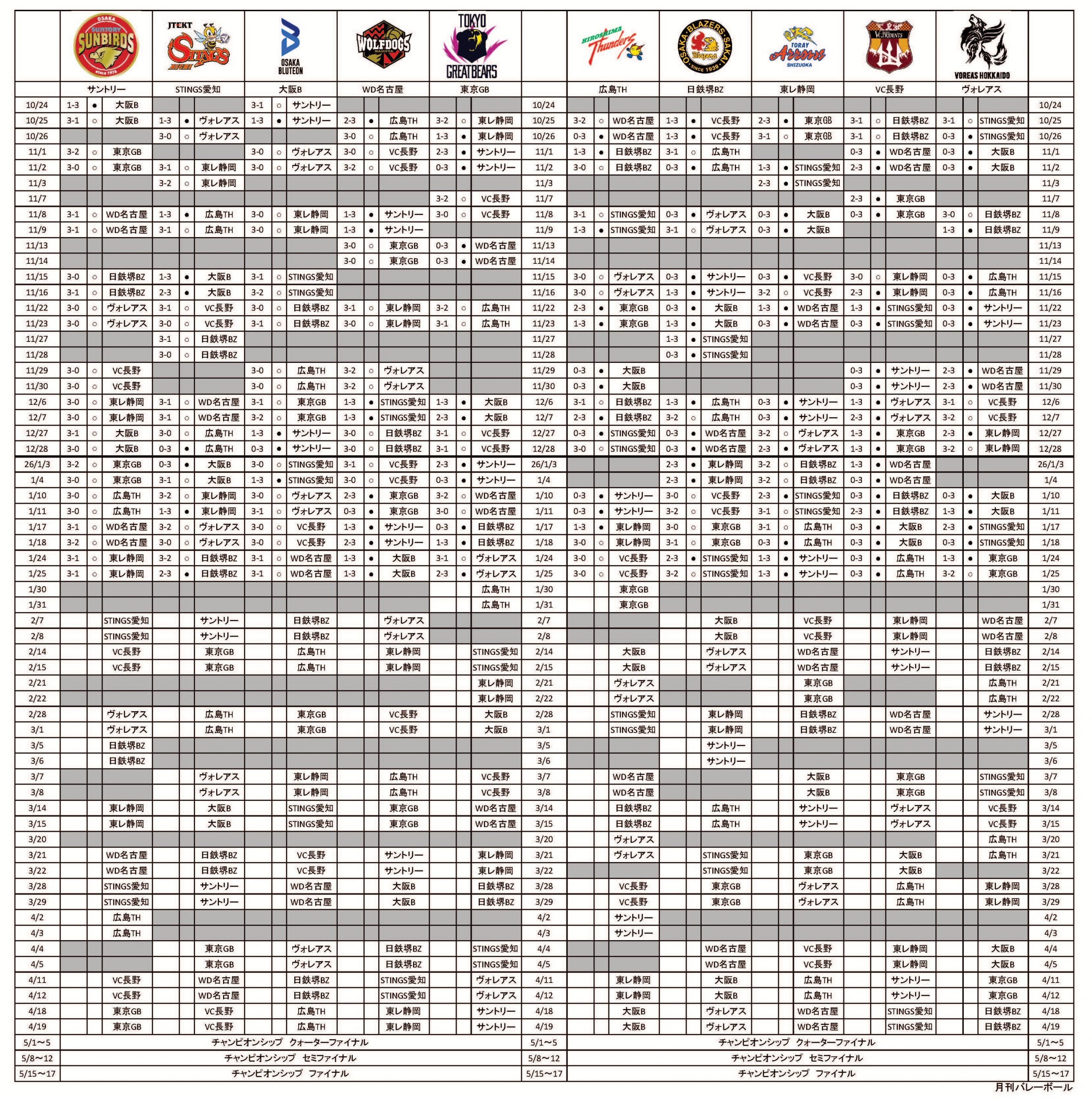 そのほかには、サントリーサンバーズ大阪、大阪ブルテオンが連勝を飾り、ジェイテクトSTINGS愛知と日本製鉄堺ブレイザーズは1勝ずつを分け合った。