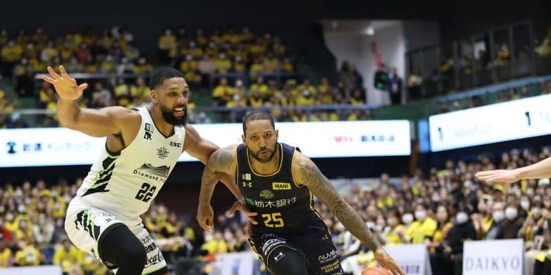 西地区の2位の名古屋ダイヤモンドドルフィンズは3位のシーホース三河と対戦した。上位争いとなったこの対決は、前半でリードを許した名古屋Dが第3クォーターの三河のスコアを7得点に抑えるディフェンスを見せ逆転に成功。77-62で名古屋Dに軍配が上がり、今節連勝で2位の座をがっちりキープした。