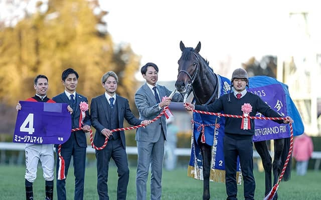 ミュージアムマイルは父リオンディーズ、母ミュージアムヒル、母の父ハーツクライの血統。25年初戦の弥生賞は4着に敗れたが、続く皐月賞で鋭い末脚を発揮して重賞初制覇を果たす。その後も日本ダービー6着、セントライト記念1着、天皇賞(秋)2着とトップレベルで健闘を続け、暮れの有馬記念では並みいる古馬を破ってGI・2勝目を飾った。