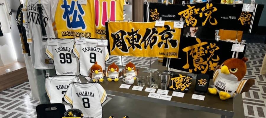 ソフトバンクは26日、本拠地・みずほPayPayドーム内の「HAWKS STORE HOME」で、今シーズン開幕に向けた新グッズのメディア向け内覧会を行った。今季は“推し活”需要を意識したカラフルなアイテムや、懐かしのキャラクターとのコラボ商品など、多種多様なラインナップが揃った。