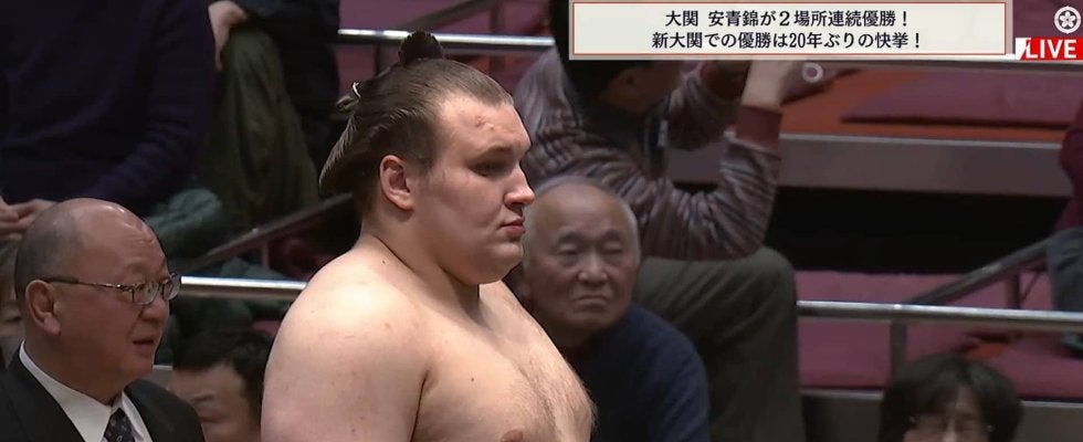 3場所連続優勝での綱とりにも期待がかかる安青錦。大注目の大相撲三月場所は8日(日)よりエディオンアリーナ大阪で開催される。(ABEMA/大相撲チャンネル)