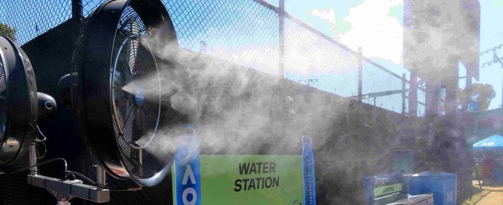 ◆ヒートルールと熱ストレス指数 メルボルン・パーク(会場がある場所)の複数地点で、気温、放射熱、湿度、風速の4気候要素を測定。広範な研究と試験を経て設定した熱ストレス指数(HSS)を1~5段階で算出する。最大の5になると、すべてのコートで行われている男女シングルス、ダブルス全ての試合が中断される。車いすテニスはHSSが4・6、ジュニアは4・9が中断の目安だ。