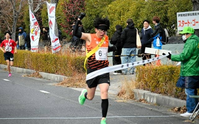 伊賀市や市スポーツ推進委員協議会、市陸上競技協会でつくる実行委員会が主催。選手らは5区間15・1キロのコースでたすきをつなぎ、住宅街や各種工場の周辺を力走した。