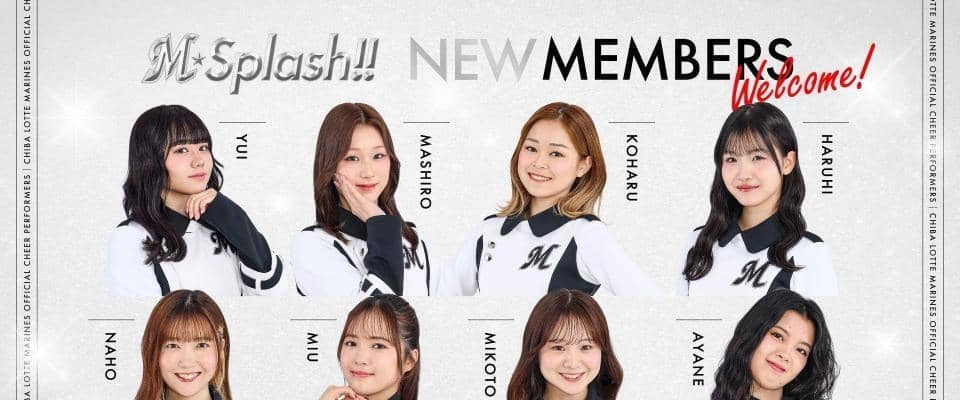 ロッテは27日、球団公式チアパフォーマー「M☆Splash!!(エムスプラッシュ)」に、2026年新メンバーとしてAYANE、HARUHI、KOHARU、MASHIRO、MIKOTO、MIU、NAHO、YUIの8人が加入したと発表した。今季は計22人で活動する。