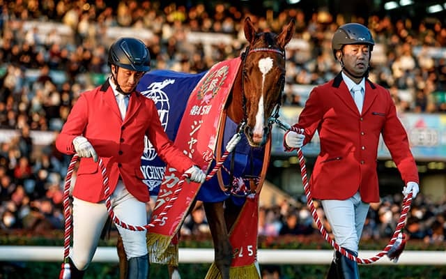 カランダガンは父Gleneagles、母Calayana、母の父Sinndarの血統。25年初戦のドバイWCでダノンデサイルの2着に入り、続く6月のコロネーションCでも2着に健闘する。同月のサンクルー大賞で待望のG1初制覇を飾ると、キングジョージVI世&クイーンエリザベスS、英チャンピオンSとビッグレースを3連勝して来日。日本の速い流れ、馬場にも難なく対応し、マスカレードボールとの叩き合いを制してジャパンCを勝利した。外国調教馬の同レース制覇は20年ぶりの出来事だった。