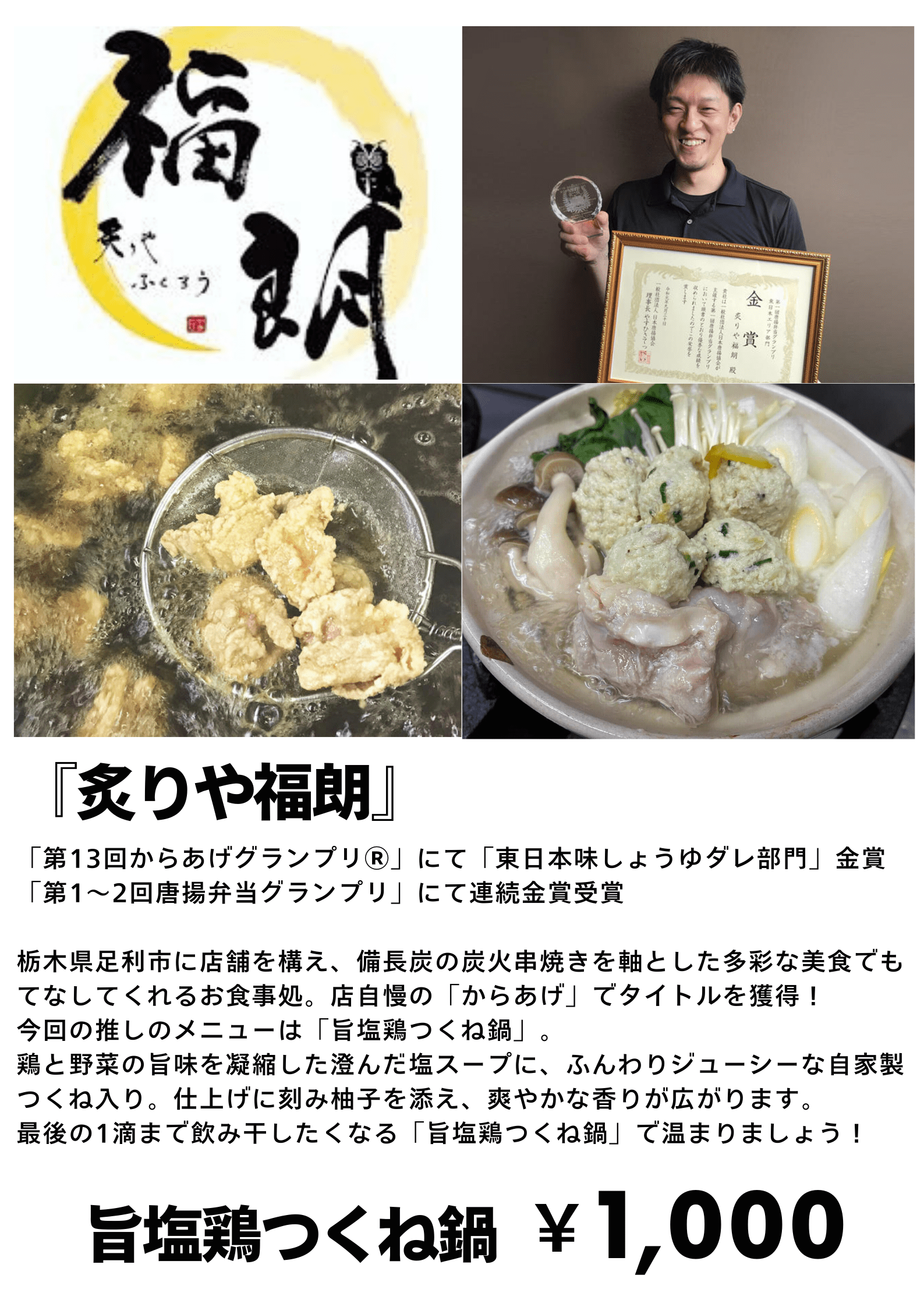 まず1つ目のメニューは、数々のからあげコンクールなどで受賞歴のある