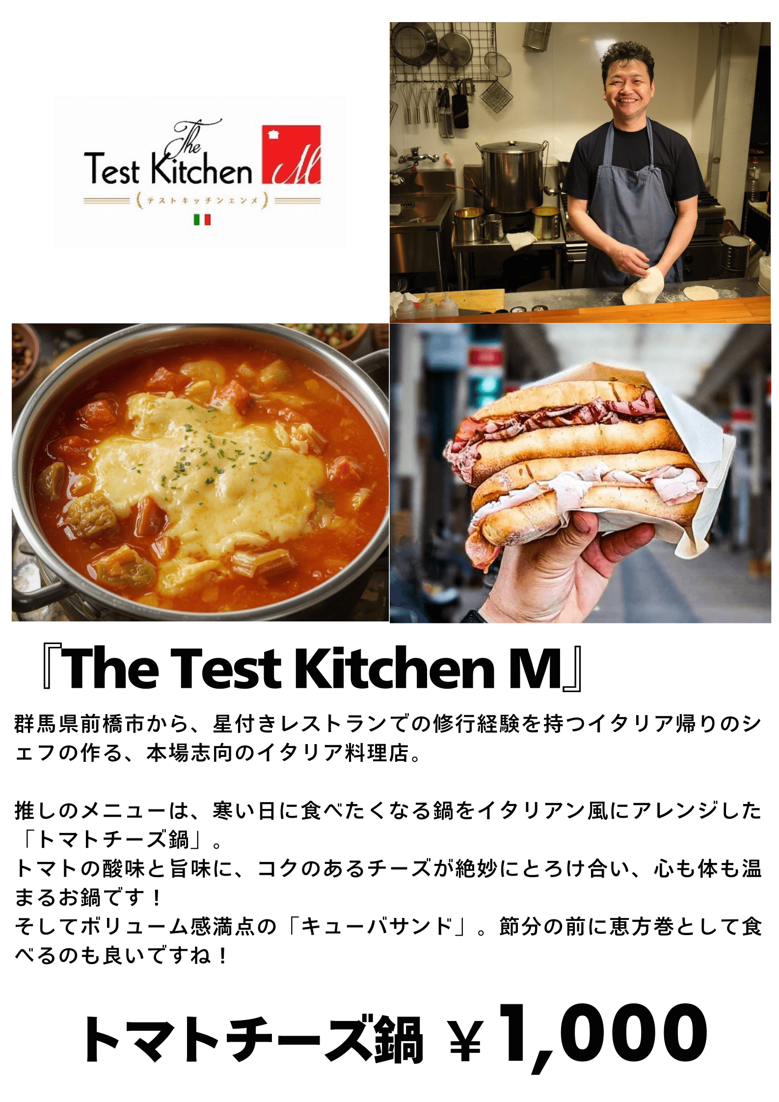 イタリアンシェフの作る、本場志向のイタリア料理店「The Test Kitchen M」の、
