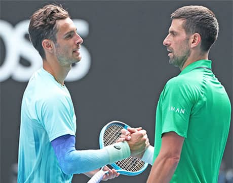 テニスの全豪オープン(オーストラリア/メルボルン、ハード、グランドスラム)は28日、第4シードのN・ジョコビッチ(セルビア)と第5シードのL・ムセッティ(イタリア)の男子シングルス準々決勝が行われたが、ムセッティは6-4, 6-3, 1-3の時点で負傷により途中棄権を選択。勝利目前で無念の準々決勝敗退となった。